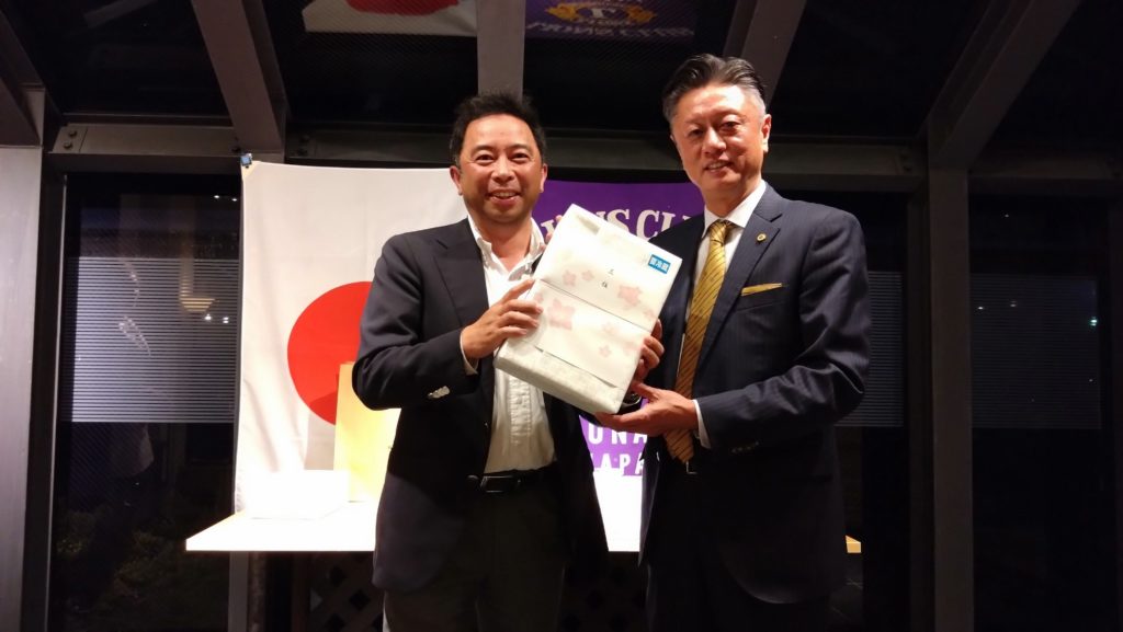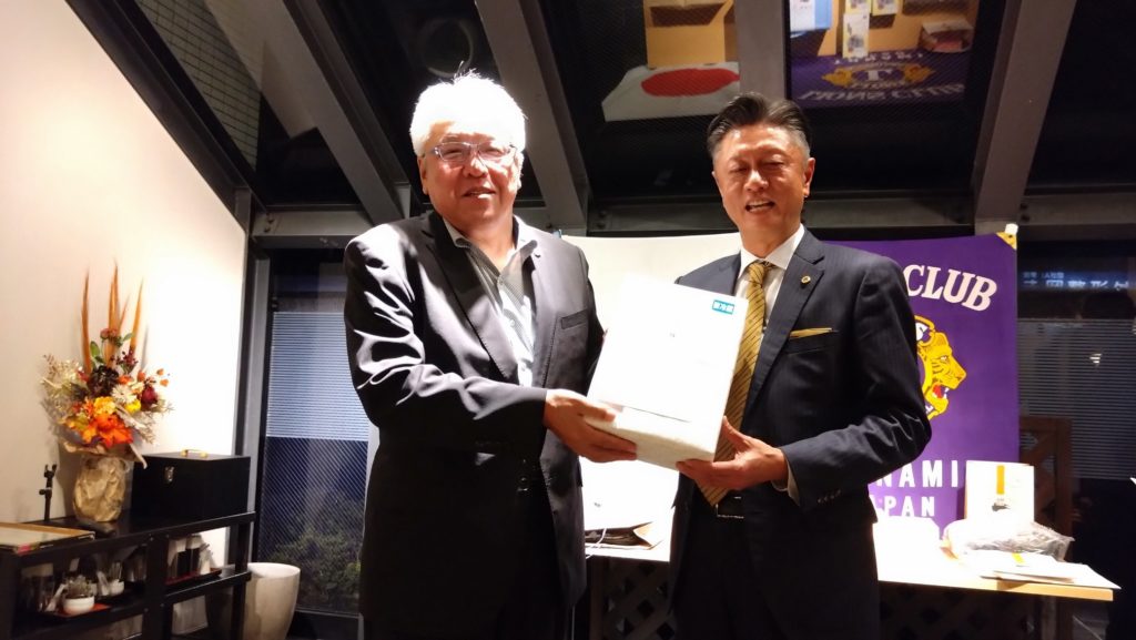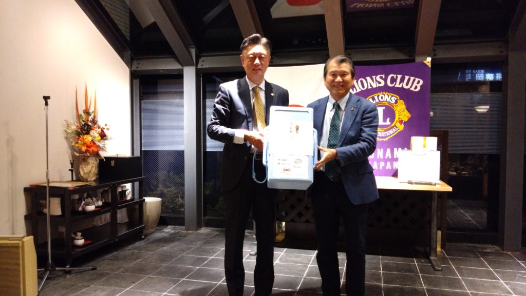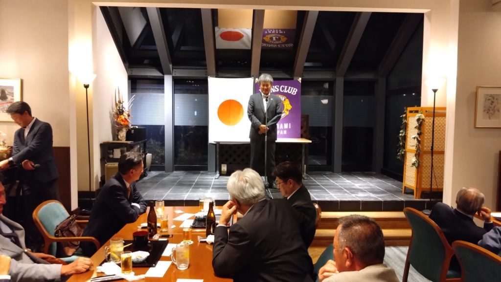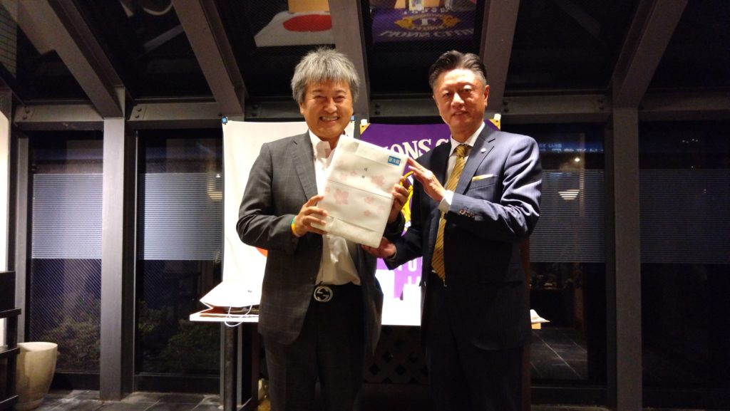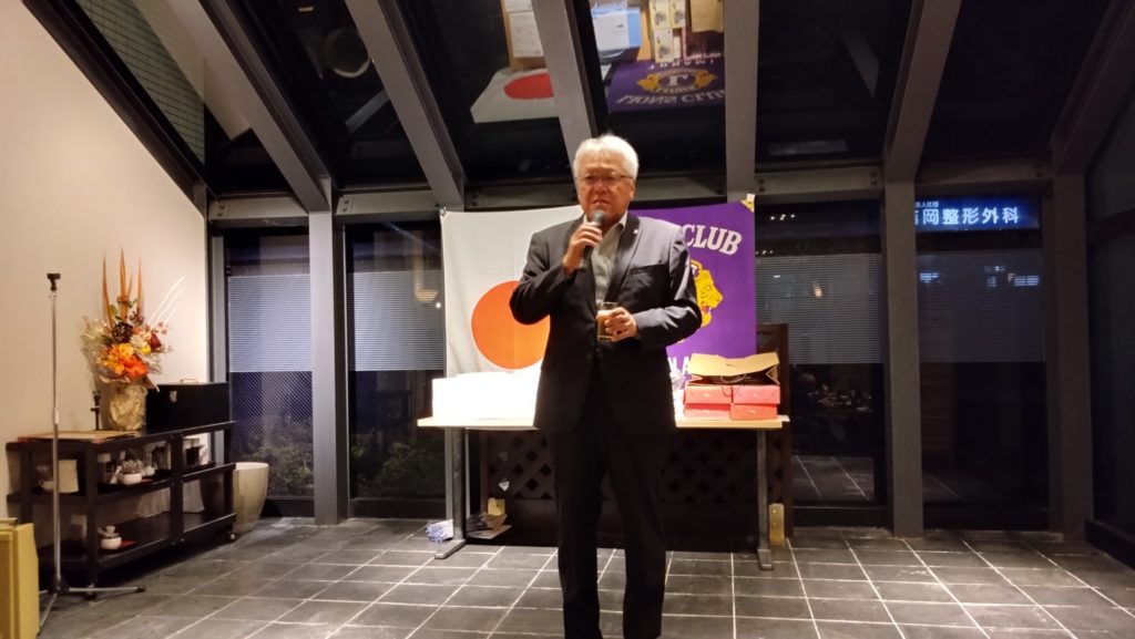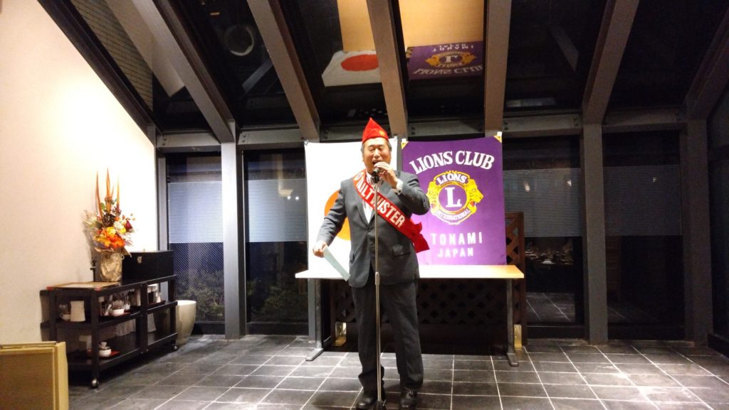 今回は、会長杯チャリティーゴルフ大会のあと例会を開催しました。チャリティーゴルフ大会ということで、大会参加者にはショートホールでワンオンしない場合などに上限2000円のチャリティー募金をしていただき、大会に参加しないメンバーには2000円の協力金をいただきました。今回集まったチャリティー募金は、高岡市伏木地区で行います能登半島地震被災地支援アクティビティに使いたいと思います。たくさんのご協力、ありがとうございました。 例会では、L.齋藤 英紀の入会式を行いました。今年度に入って毎月入会式をしていますが、新しいメンバーが増えるということはクラブに活気が出ますね!! 例会終了後の懇親会席上で会長杯ゴルフ大会の表彰式が行われました。優勝は、L.柴田 昌尚でした。ゴルフ大会に参加しなかったメンバーも含めての全員じゃんけん大会もあり、新会員を迎えて和気藹々と楽しい夜間例会になりました。