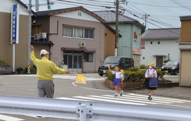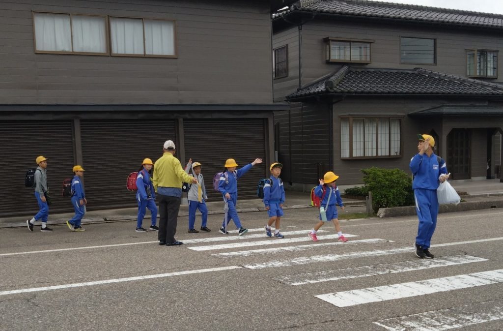 今月の愛の一声運動は、福野小学校と井波小学校で2回実施しました。それぞれ学校の正面玄関前と周辺交差点で行っていますが、登校してくる子どもたちの大きな声でのあいさつに、毎回ながら今回も元気をもらってきました。 井波小学校では、2日ほど前に地域内にクマが出たということで、父兄の車での送迎が多かったのですが心配は尽きませんね。地域の大事な子どもたちに被害が及ばないことを祈っています。