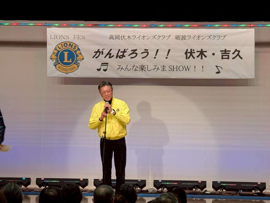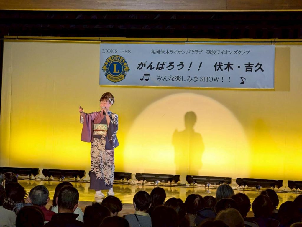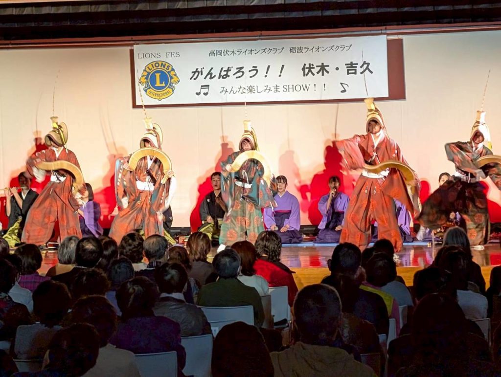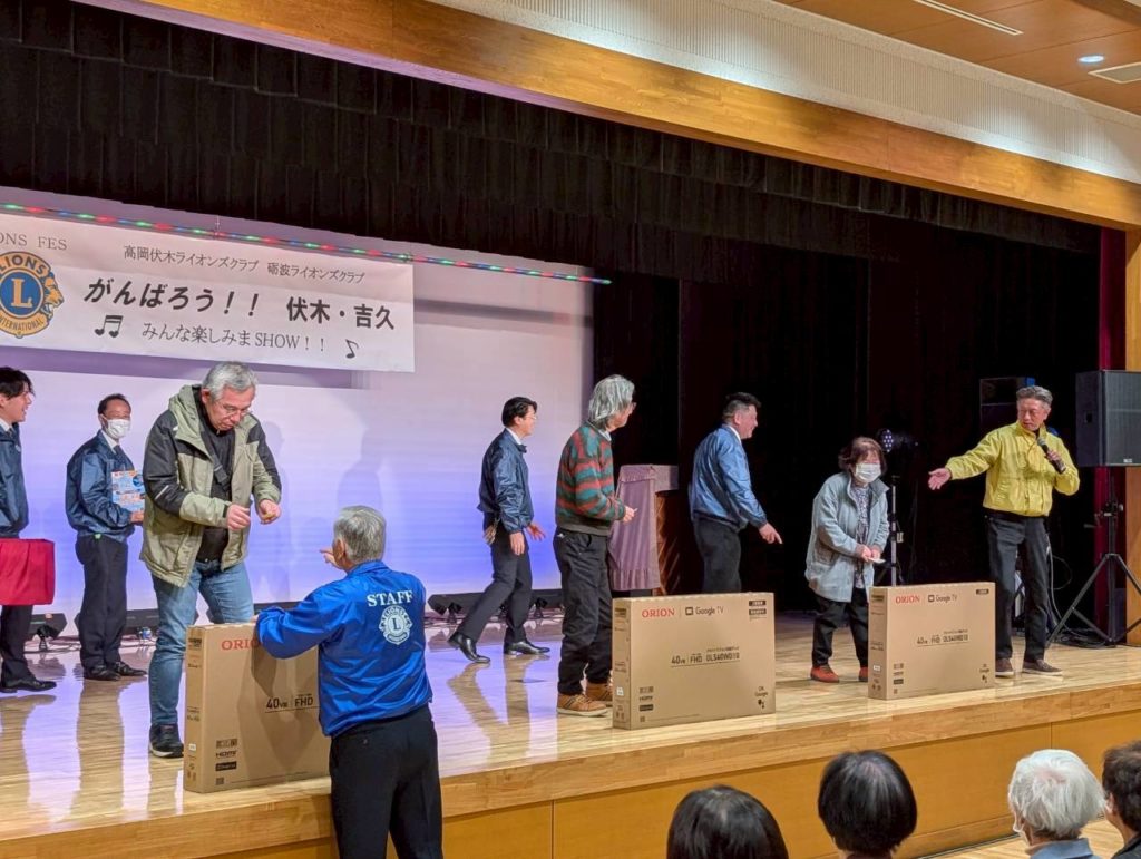能登支援アクティビティとして、高岡伏木・砺波ライオンズクラブ合同アクティビティ『ライオンズフェス がんばろう!!伏木・吉久』を開催しました。今までは能登半島地震の災害支援として石川県の輪島市などでいろいろな支援活動をしてきましたが、今回は同じリジョン内で大変な被害があった高岡市伏木地区で何かできないかと考え、高岡伏木ライオンズクラブのみなさんとも話をして、この合同アクティビティを開催することにしました。 250名を超える参加者の皆さんに、第1部は当クラブが担当して「南砺平高校 郷土芸能部」の五箇山民謡(こきりこ節、お小夜節、麦屋節)の演舞、「越中いさみ太鼓」の演奏を見てもらいました。第2部は高岡伏木ライオンズクラブの担当で、高岡出身の北野ゆきさんによる歌謡ショーと、大型TVが目玉賞品のお楽しみ大抽選会で楽しんでもらいました。