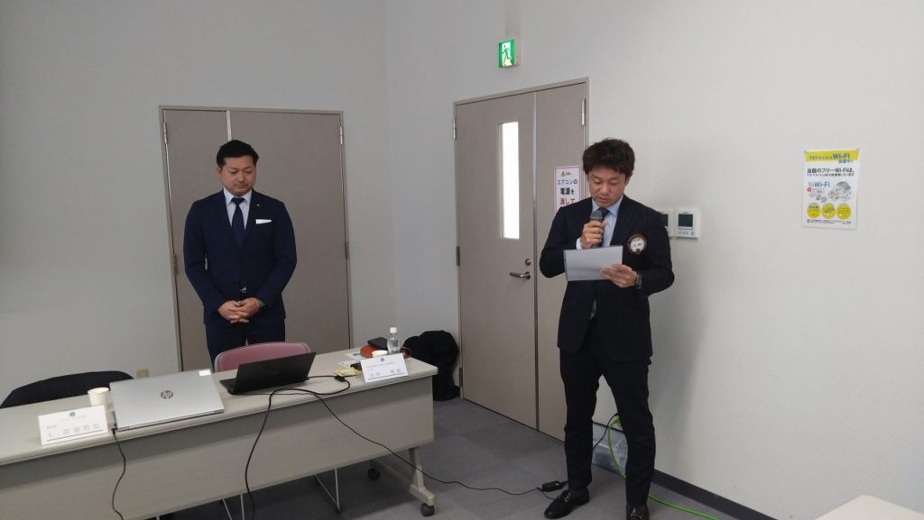 今回の例会は、計画・財務委員会の委員会タイムとして、田仲司法書士・行政書士・法務事務所 代表の田仲 聡 様をお迎えして『人生の目的~大切なものを大切に~』と題してスピーチをしていただきました。セルフカウンセリング、アチーブメントピラミッド、プライオリティマネジメント、上質世界など聞きなれない言葉を詳しく説明をしていただきました。人生の目的を達成するには、思いやりの心を持って大切な人を大切にすることが大事だと。 また今日は、L.石村 修子(千華園 代表、南砺市議会議員)の入会式を行いました。新しい仲間が増えると、クラブに活気が溢れるような気がします。今年度6人目の新会員。まだまだ増えるといいですね!!